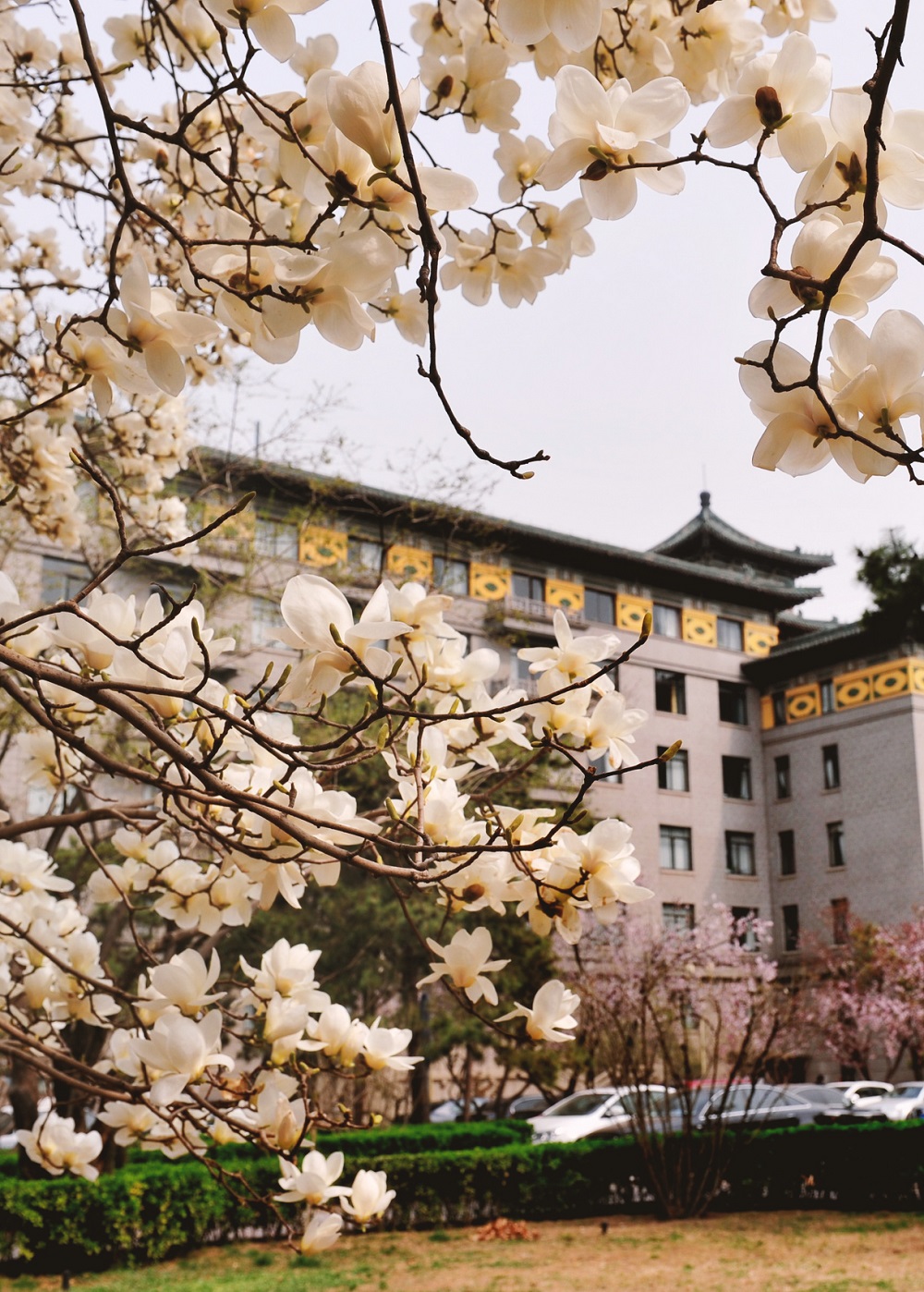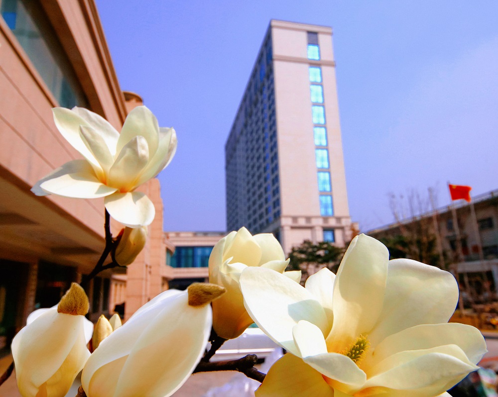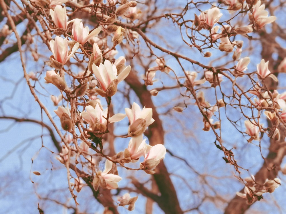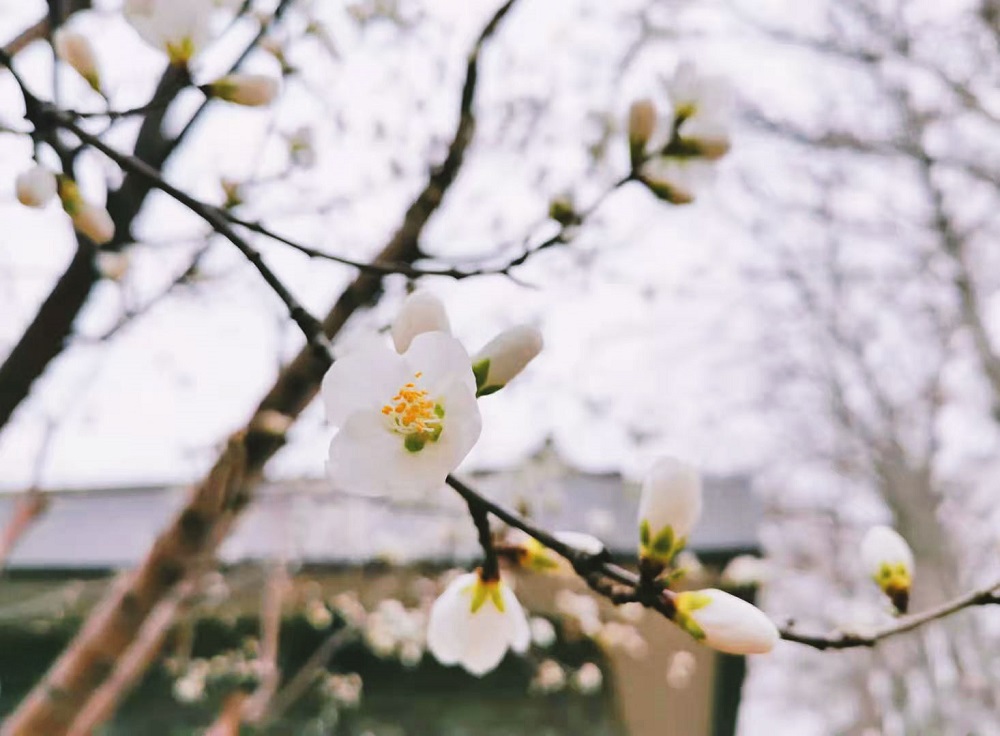 迎春、玉兰、桃樱次第绽放