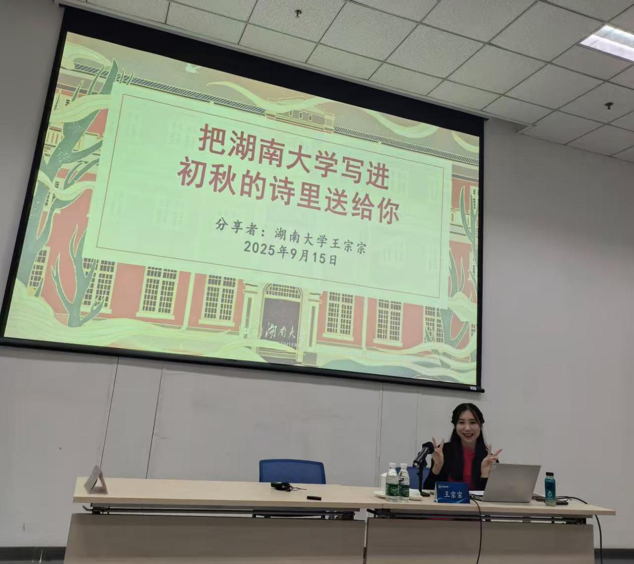 “秋风至,风意凉,今秋的桂花,已渐渐落幕,没关系,我把湖南大学写入初秋的诗里送给你。”湖南大学王宗宗从“我湖、我财和我”三个方面,声情并茂地为大家展现了湖南大学的风雅、岳麓书院的毓秀,以及湖南大学计划财务处(国资办)的风采,同时也用热情洋溢的个人舞蹈视频,表达了与来自五湖四海的同学们相识相知相遇的感恩之情。