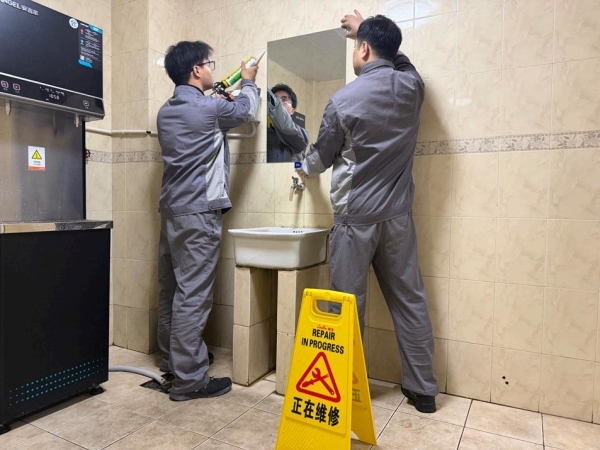 落实“上门纳谏”建议,为开水房增设台镜。