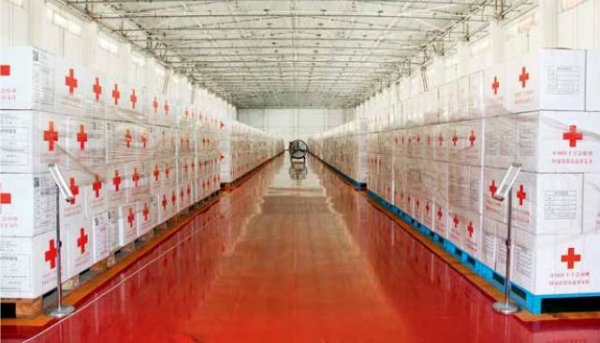 中国红十字会总会备灾物资仓库,物品摆放整齐有序