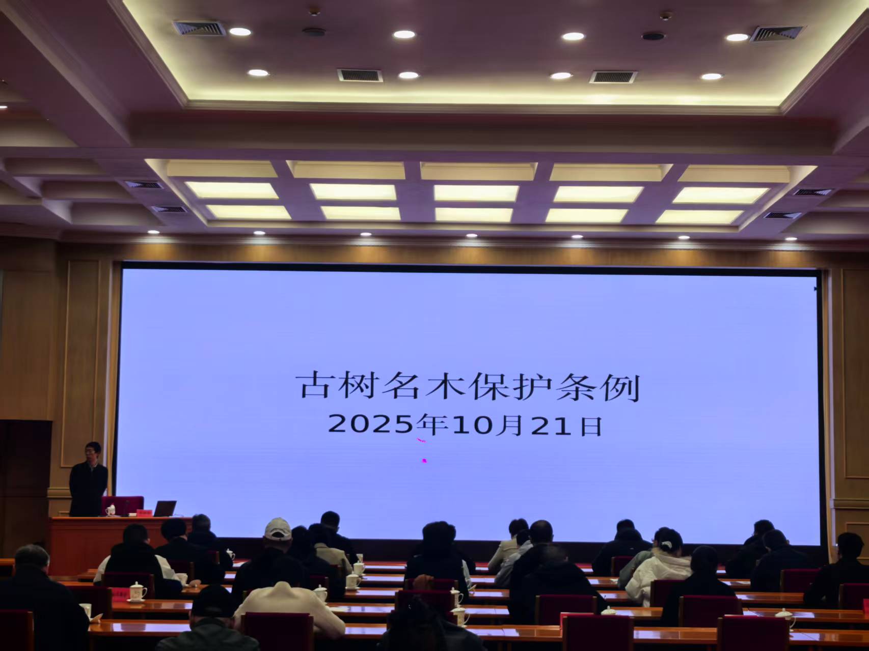 2025年10月21日,中央国家机关绿化办举办绿化工作座谈会,围绕做好中央国家机关古树名木保护工作进行座谈交流。司法部相关负责同志就《古树名木保护条例》做了讲解。