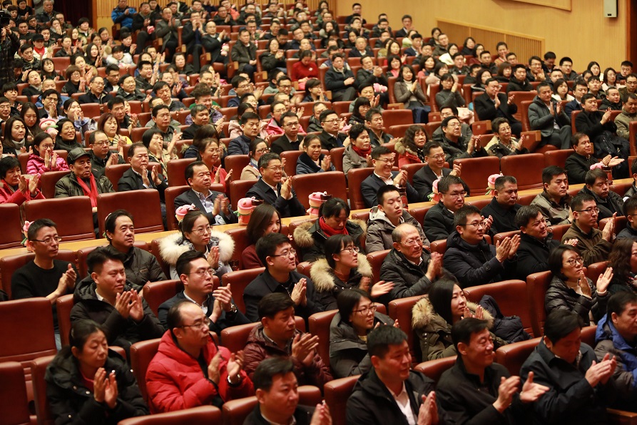 上午9时,在欢快的乐曲声和热烈的掌声中,李宝荣、陈建明、赵峰涛、王永红、赵建国步入会场,来到干部职工中间,同大家亲切握手,互致问候、祝福新春。