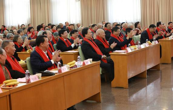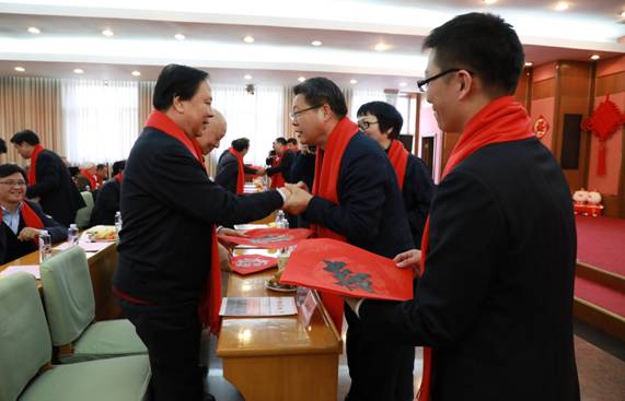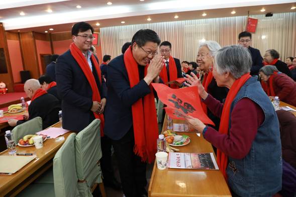 李宝荣、陈建明、赵峰涛、赵建国和大家一起欣赏了老同志们自编自演的合唱、舞蹈、京剧清唱、模仿秀、葫芦丝合奏、三句半等文艺节目,并分别与郭济、焦焕成、李静、田玉安、曹剑峰、赵文海、唐树杰、高翔、鉴保卫、尚晓汀、于永水、庞长青等老领导,以及230余位老同志亲切握手、互致问候、合影留念,为老同志们送上代表新春祝福的“福”字,会场内欢声笑语不断,节日气氛浓厚。