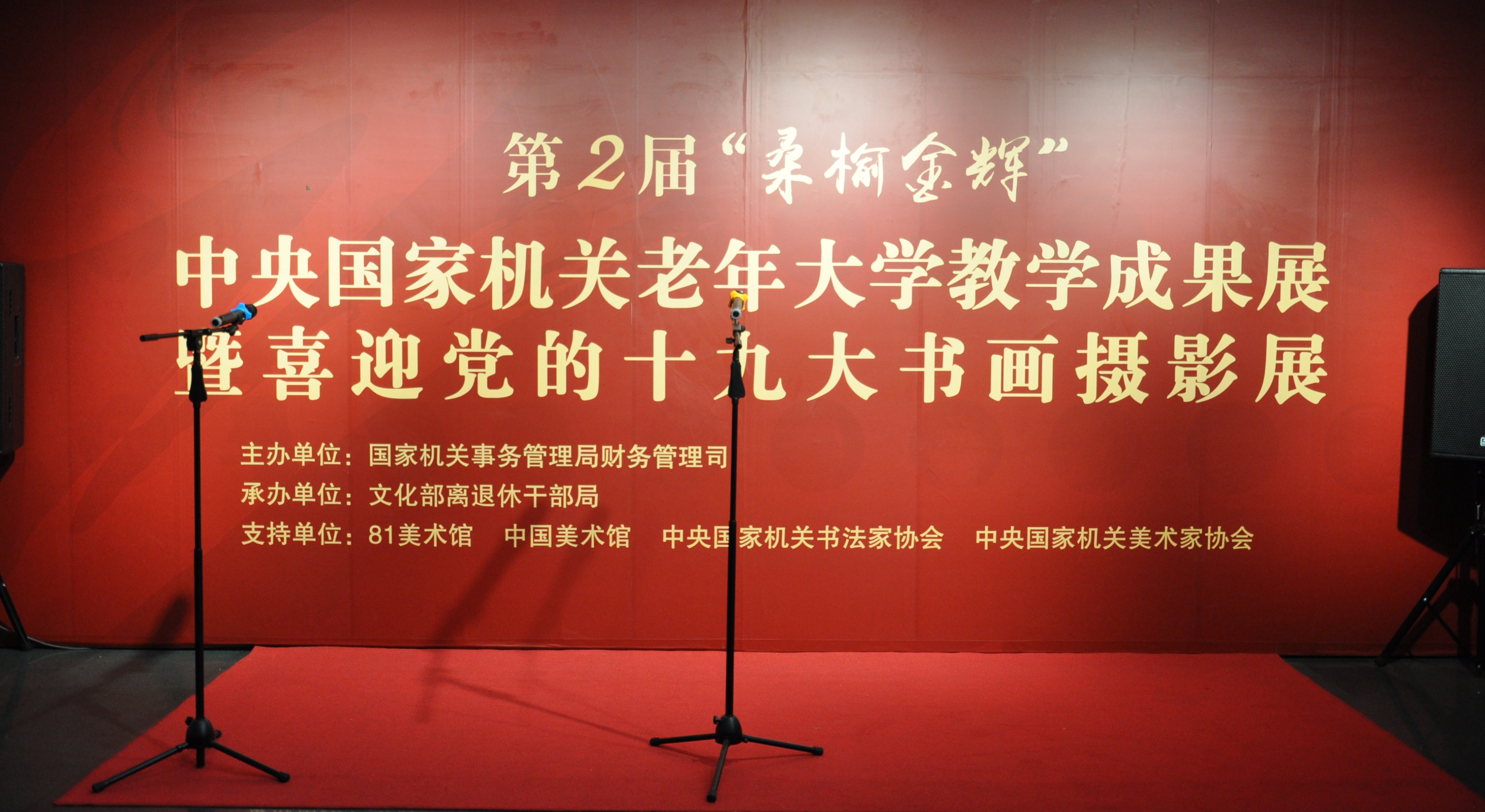 为喜迎党的十九大胜利召开,引导广大离退休干部为党和人民事业增添正能量,推动各部门老年大学教学工作情况交流和成果展示,10月10日,国家机关事务管理局财务管理司会同文化部离退休干部局在81美术馆举办了第二届“桑榆金辉”中央国家机关老年大学教学成果展暨喜迎党的十九大书画摄影展开幕式,来自中组部老干部局、中央国家机关工委老龄办、全国老龄办、国务院办公厅、外交部、发展改革委等60多个中央国家机关离退休干部管理机构的领导和100多位离退休同志出席,国家机关事务管理局党组成员、副局长王永红宣布展览开幕。